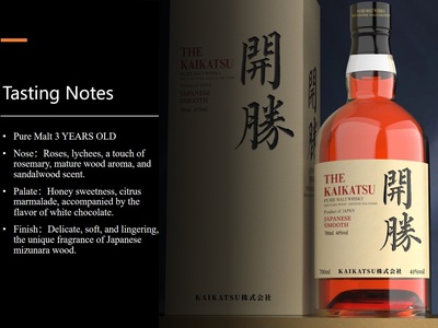 The selection of top-quality "soft and smooth" forest snow mountain meltwater , creates a variety of original wines. The craftsmanship of brewing is stored in every drop of KAIKATSU Whisky.